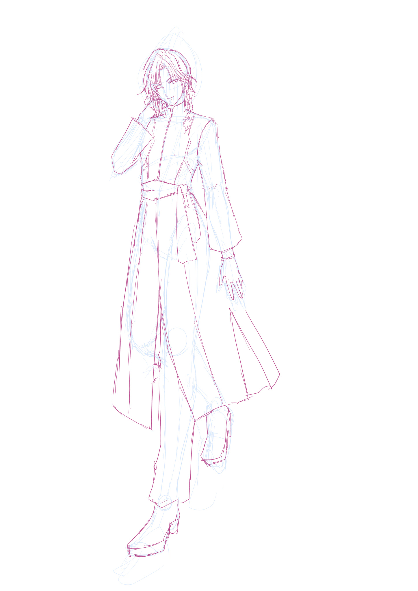 3Dで上手にポーズを取らせる事が出来たぞ!ってなったんですけど、資料見たらまー細い!細くて長い!ってなったので、だいぶ下描きからぎゅーっと横幅を縮めて縦に引き伸ばして清書しましたww